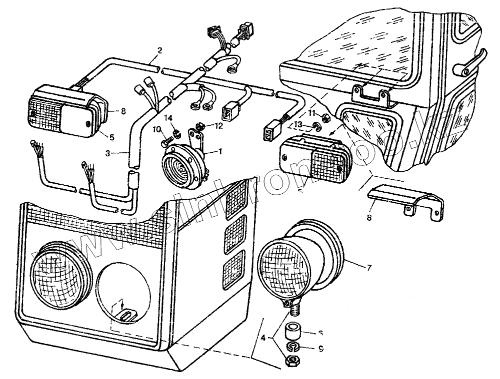 Каталог запасных частей к технике: ЛТЗ-55. Установка передних фар и фонарей
