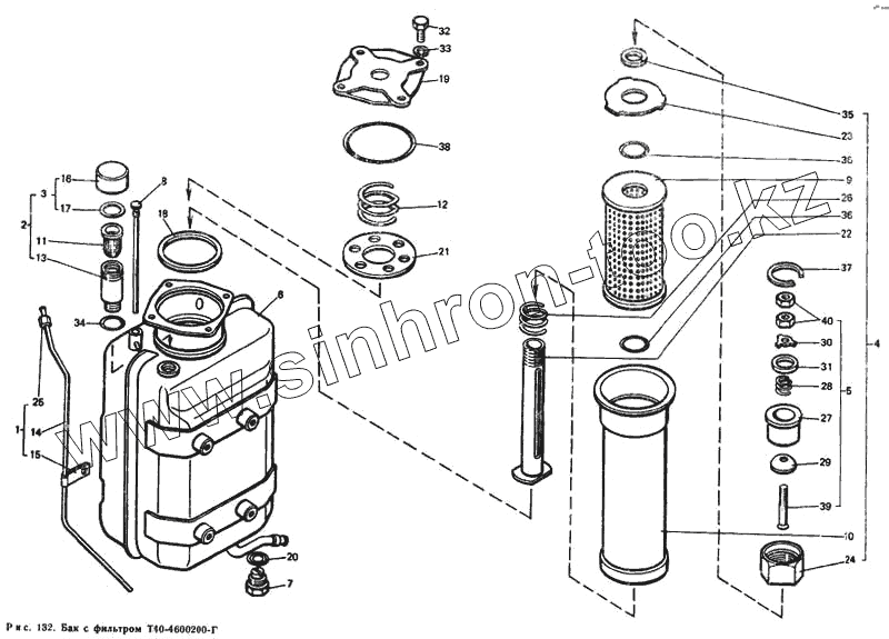 Каталог запасных частей к технике: ЛТЗ Т-40М. Бак с фильтром Е40-4600200-Г