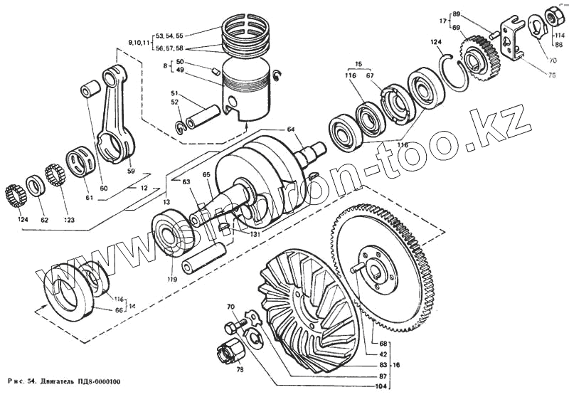 Каталог запасных частей к технике: ЛТЗ Т-40М. Двигатель ПД8-0000100