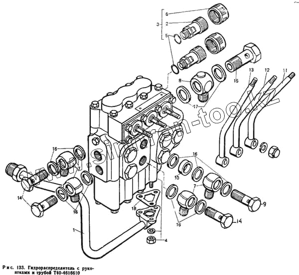 Каталог запасных частей к технике: ЛТЗ Т-40М. Гидрораспределитель с рукоятками и трубой Т40-4616610