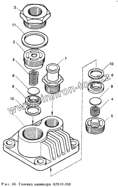 Каталог запасных частей к технике: ЛТЗ Т-40М. Головка цилиндра А29.01.050