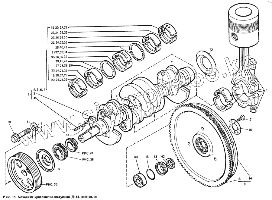 Каталог запасных частей к технике: ЛТЗ Т-40М. Механизм кривошипно-шатунный Д144-1000120-10