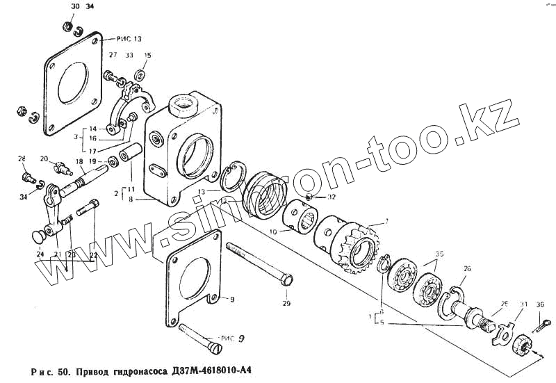 Каталог запасных частей к технике: ЛТЗ Т-40М. Привод гидронасоса Д37М-4618010-А4