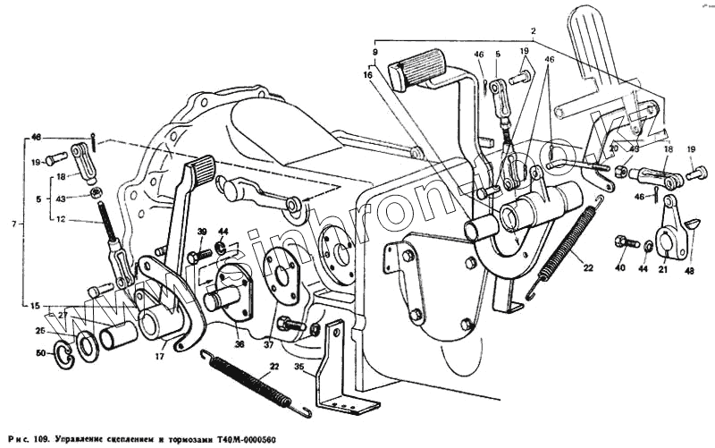 Каталог запасных частей к технике: ЛТЗ Т-40М. Управление сцеплением и тормозами Т40М-0000560