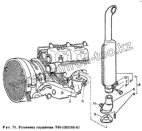 Каталог запасных частей к технике: ЛТЗ Т-40М. Установка глушителя Т40-1205180-А1