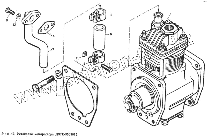 Каталог запасных частей к технике: ЛТЗ Т-40М. Установка компрессора Д37Е-3509015