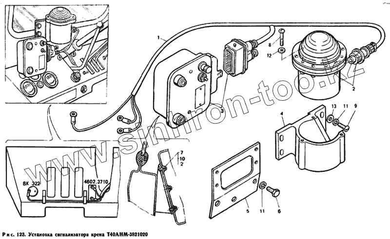 Каталог запасных частей к технике: ЛТЗ Т-40М. Установка сигнализатора крена Т40АНМ-3821020