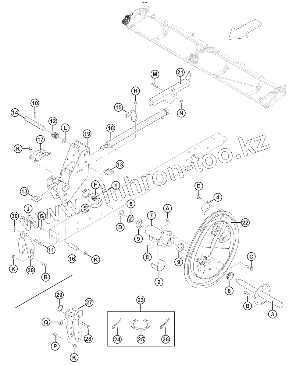 Каталог запасных частей к технике: MacDon М 215908 B. Компоненты мотовила - сдвоенное мотовило, правый рычаг