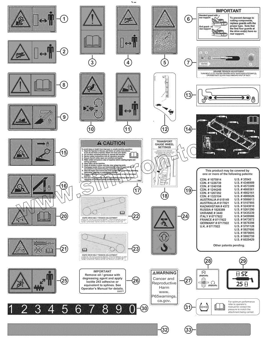 Каталог запасных частей к технике: MacDon М 215908 B. Наклейки и отражатели