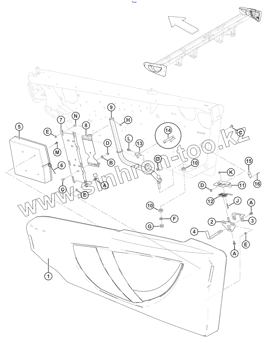 Каталог запасных частей к технике: MacDon М 215908 B. Рама жатки - боковые щитки