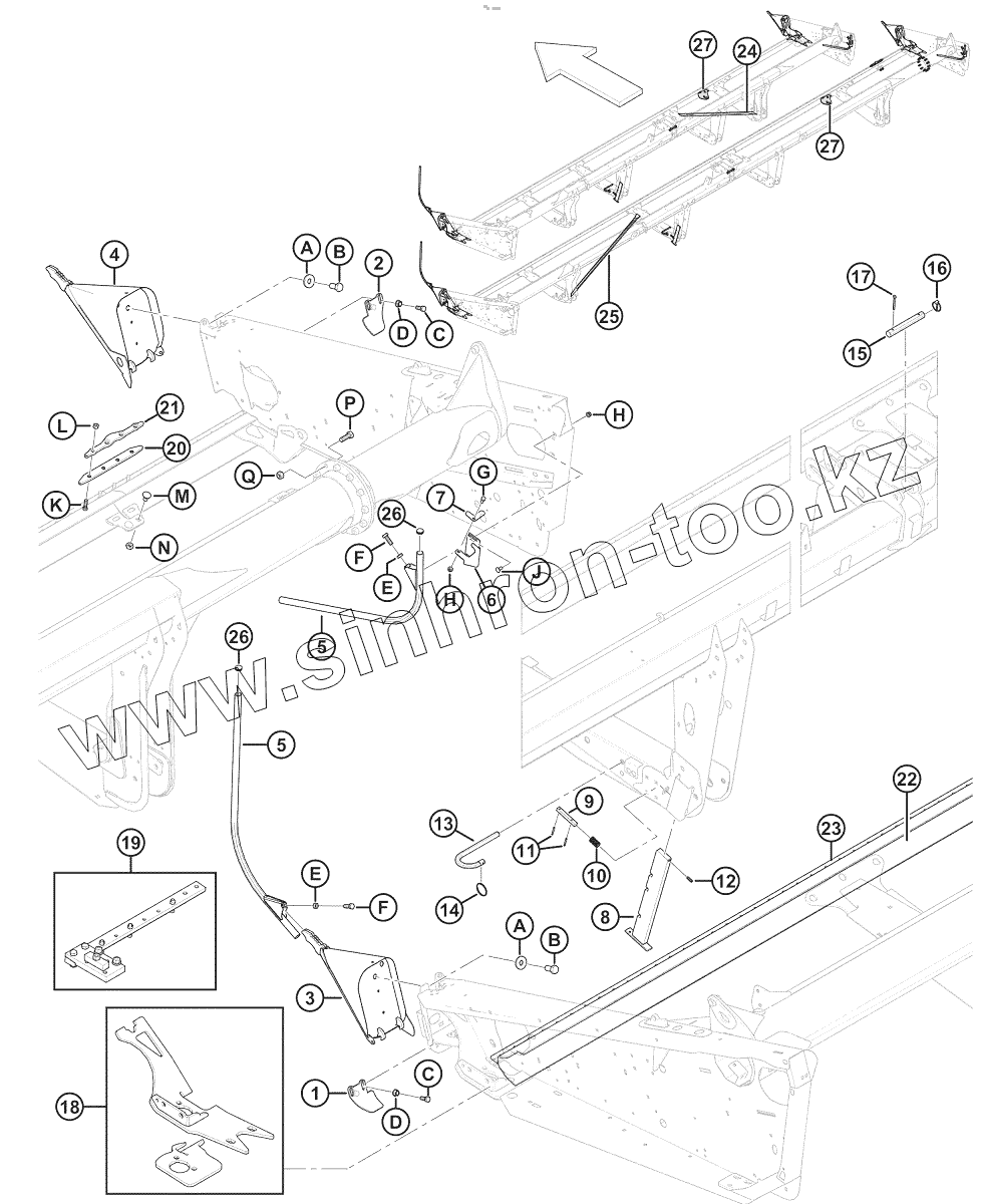 Каталог запасных частей к технике: MacDon М 215908 B. Рама жатки - делители и стойка