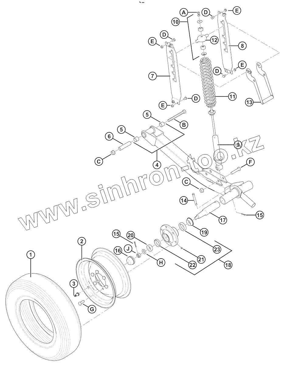 Каталог запасных частей к технике: MacDon М 215908 B. Стабилизирующие колеса (дополнительное оборудование)