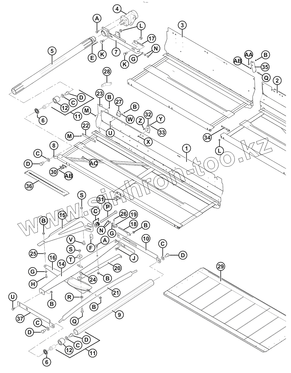 Каталог запасных частей к технике: MacDon-D65. Дека полотняной жатки и натяжитель