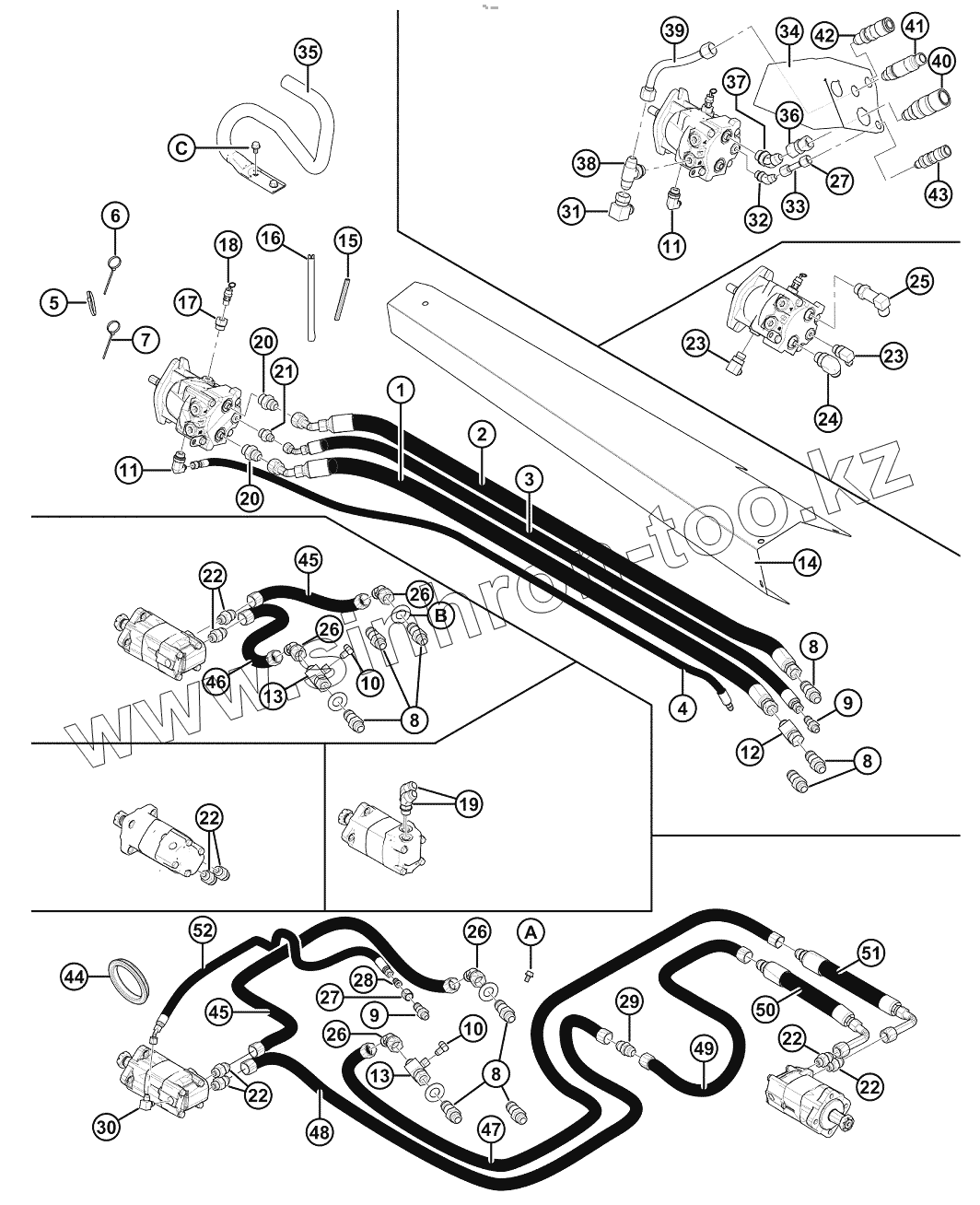 Каталог запасных частей к технике: MacDon-D65. Гидравлика привода ножа