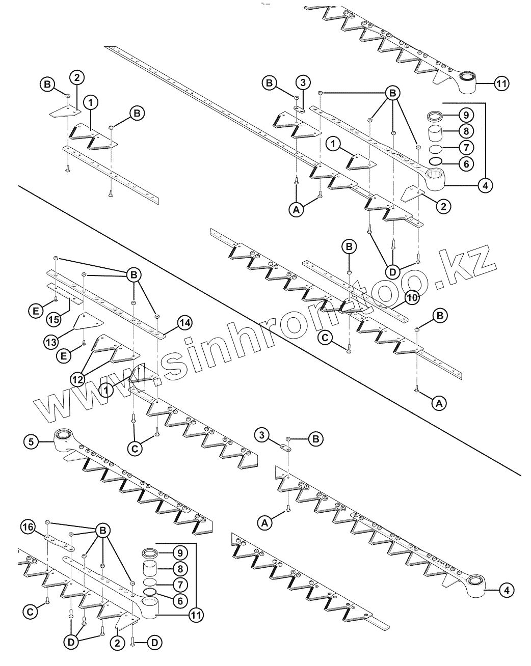 Каталог запасных частей к технике: MacDon-D65. Компоненты ножа и его головки