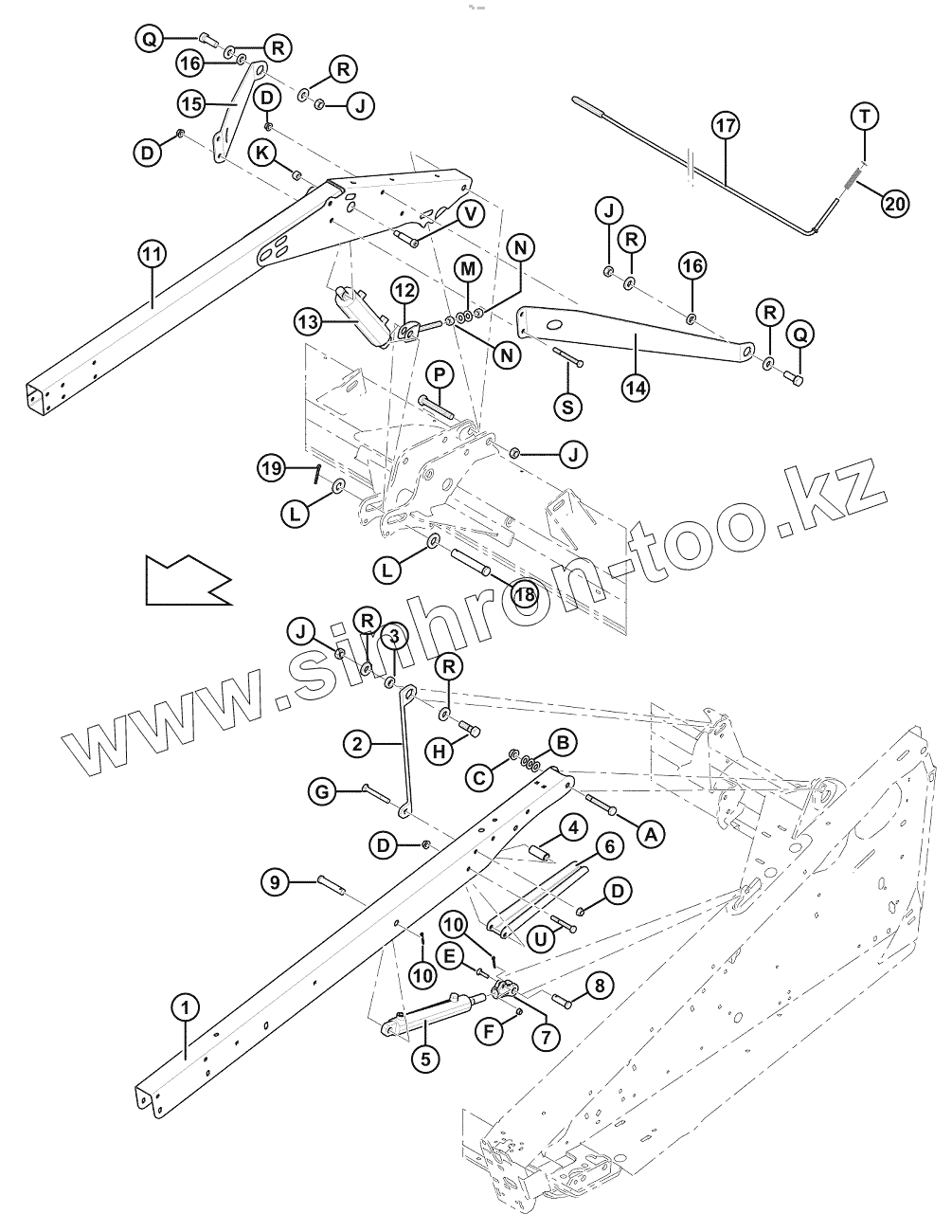 Каталог запасных частей к технике: MacDon-D65. Рычаги опоры мотовила и подъемные цилиндры