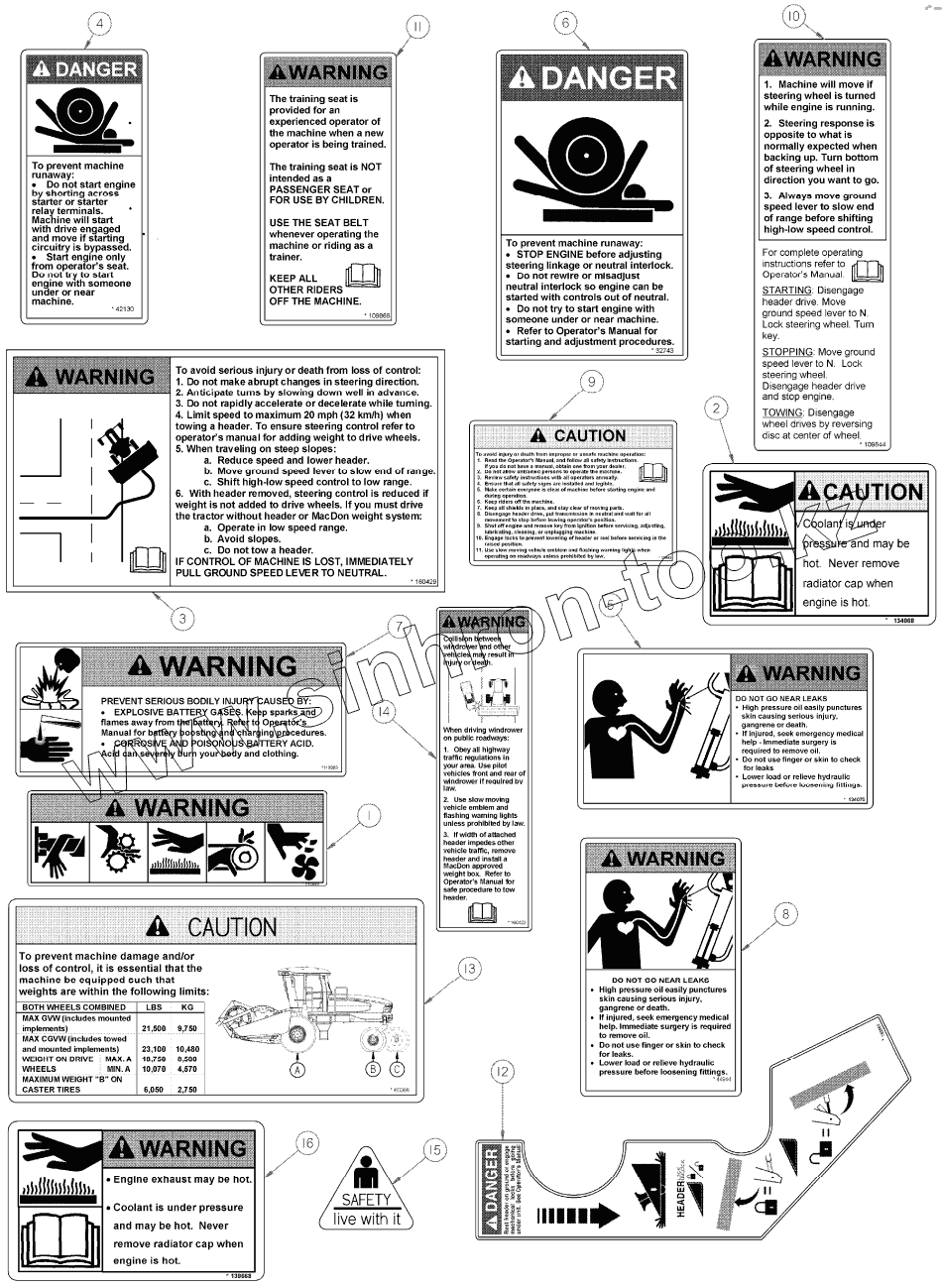 Каталог запасных частей к технике: MacDon-M155. Декали безопасности