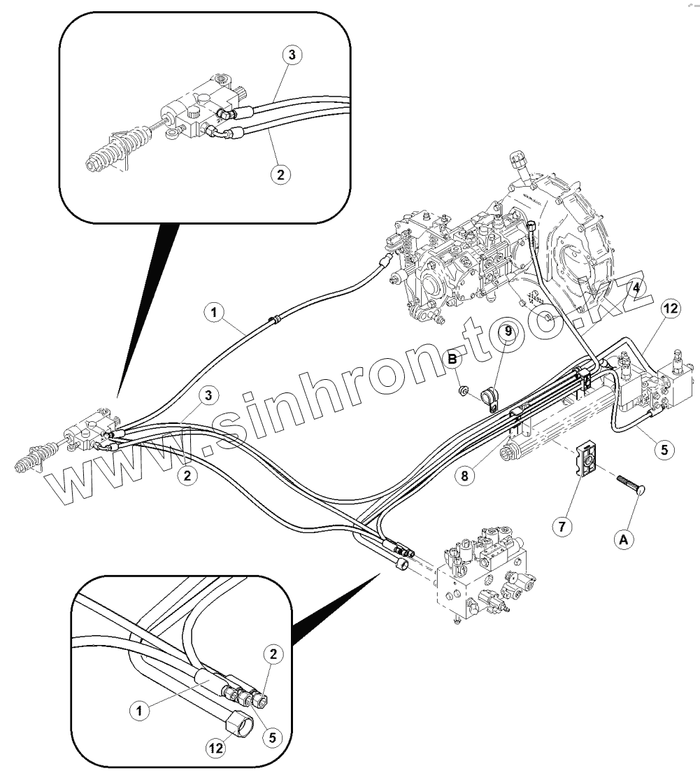 Каталог запасных частей к технике: MacDon-M155. Гидравлика серво и замка нейтрали