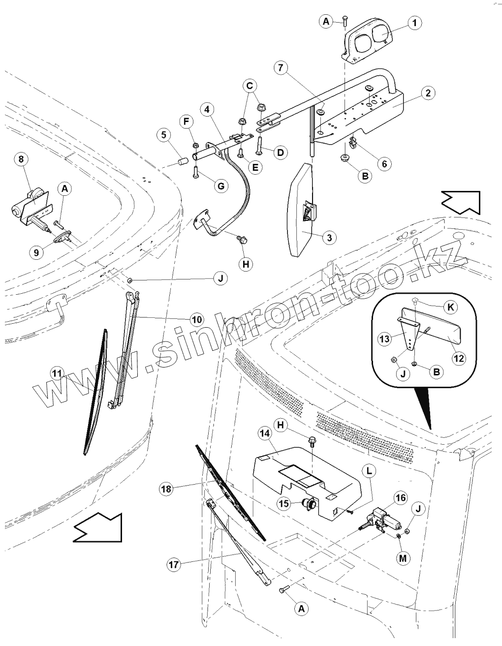 Каталог запасных частей к технике: MacDon-M155. Зеркала и дворники