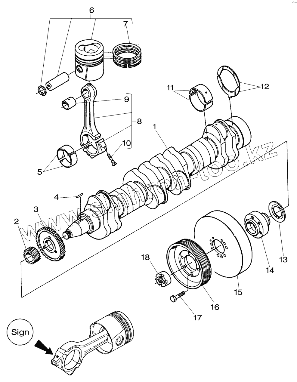 Каталог запасных частей к технике: Massey Ferguson Fend-8300/8350. Engine, Crankshaft, Pistons & Piston Rod 8300