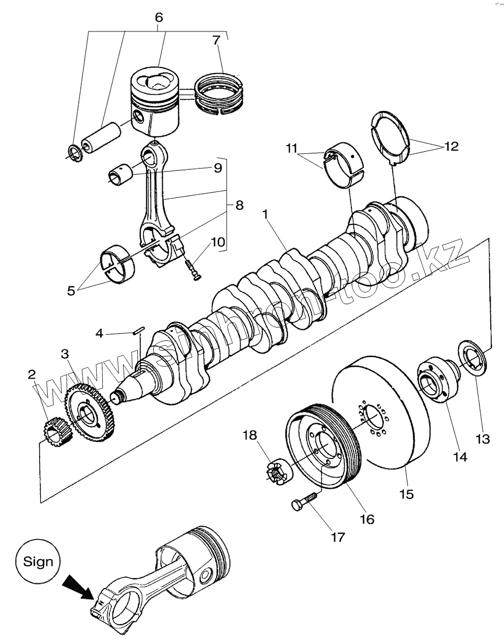 Каталог запасных частей к технике: Massey Ferguson Fend-8300/8350. Engine, Crankshaft, Pistons & Piston Rod 8350