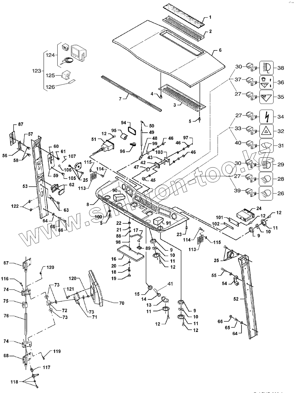 Каталог запасных частей к технике: Massey Ferguson Fend-8300/8350. Frontpanel, Side Members And Datavision