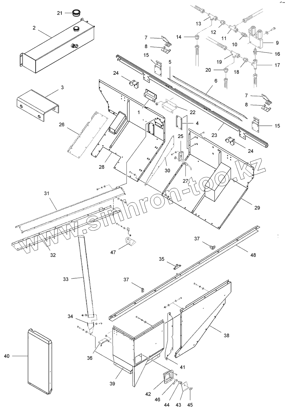 Каталог запасных частей к технике: Massey Ferguson Fend-8300/8350. Guards - Grain Tank Top