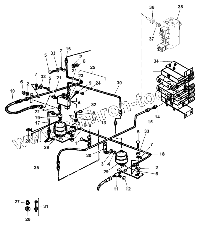 Каталог запасных частей к технике: Massey Ferguson MF-7244 Activa. Cutter Bar Lifting-Up To 551510048