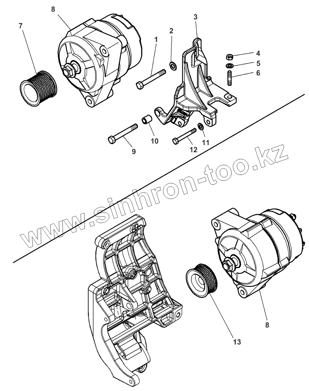 Каталог запасных частей к технике: Massey Ferguson MF-8650 Dyna-VT. Alternator and Bracket