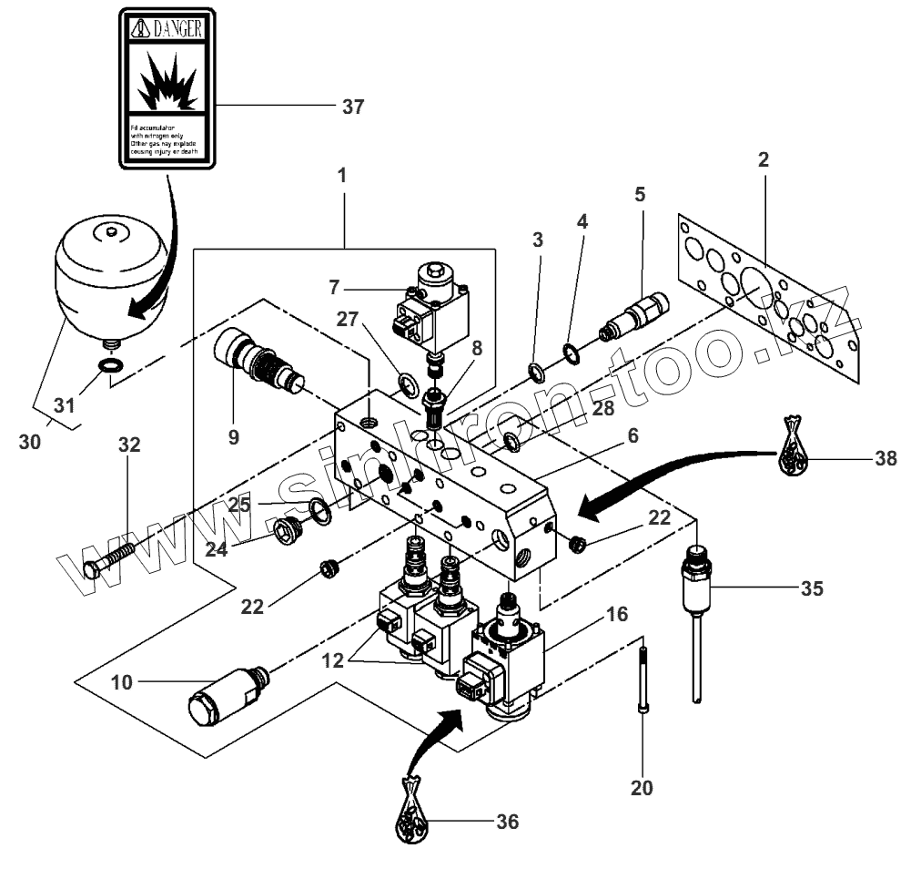 Каталог запасных частей к технике: Massey Ferguson MF-8650 Dyna-VT. Hydraulic Valve Elcck