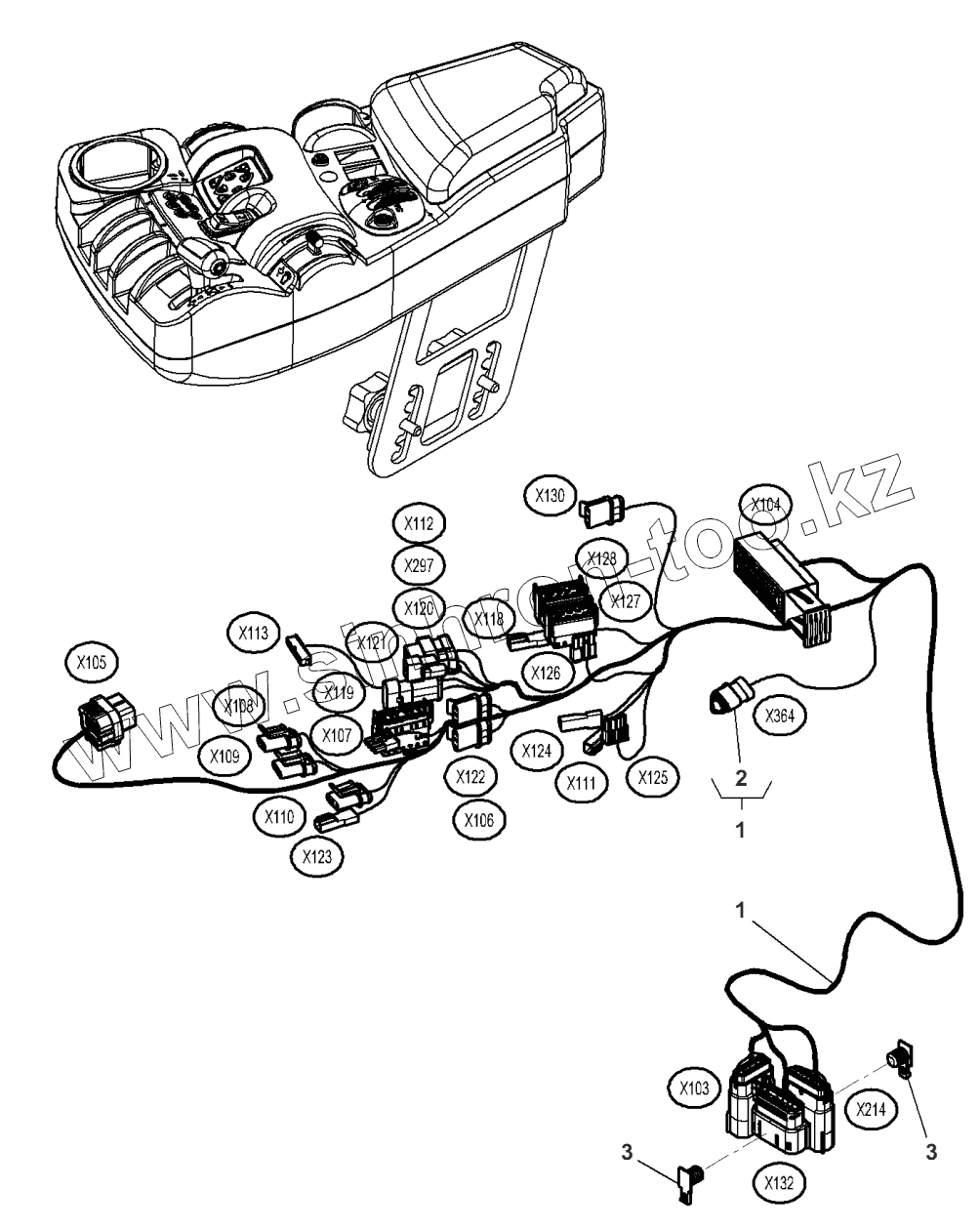 Каталог запасных частей к технике: Massey Ferguson MF-8650 Dyna-VT. Instrument Panel Harness - Armrest