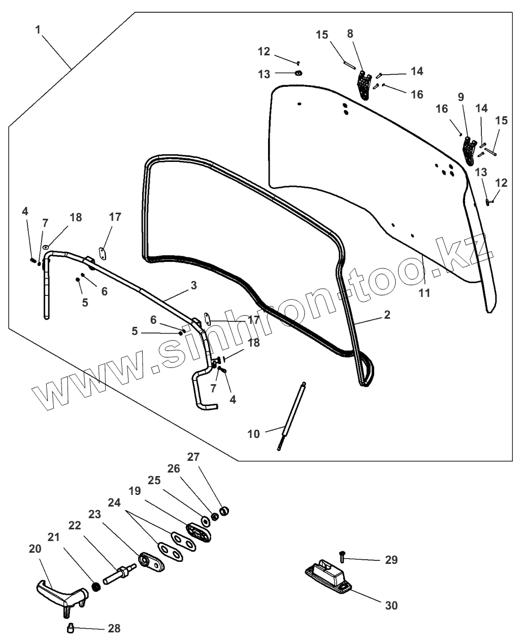 Каталог запасных частей к технике: Massey Ferguson MF-8650 Dyna-VT. Rear Window Mechanism