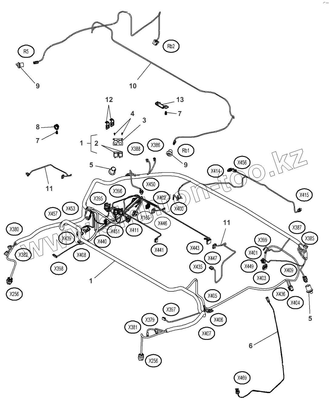 Каталог запасных частей к технике: Massey Ferguson MF-8650 Dyna-VT. Roof Harness - Automatic Air Conditioner