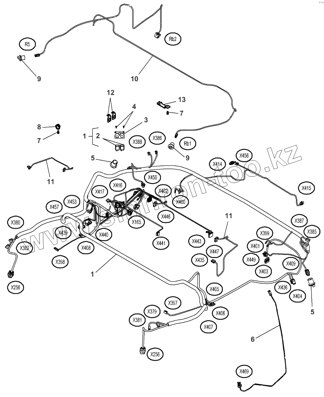 Каталог запасных частей к технике: Massey Ferguson MF-8650 Dyna-VT. Roof Harness - Automatic Air Conditioner