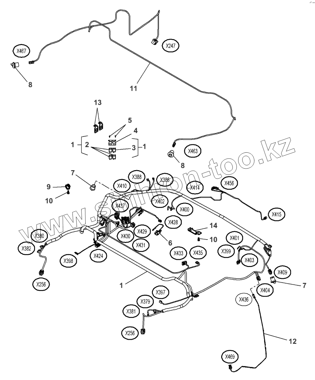 Каталог запасных частей к технике: Massey Ferguson MF-8650 Dyna-VT. Roof Harness - Manual Air Conditioner