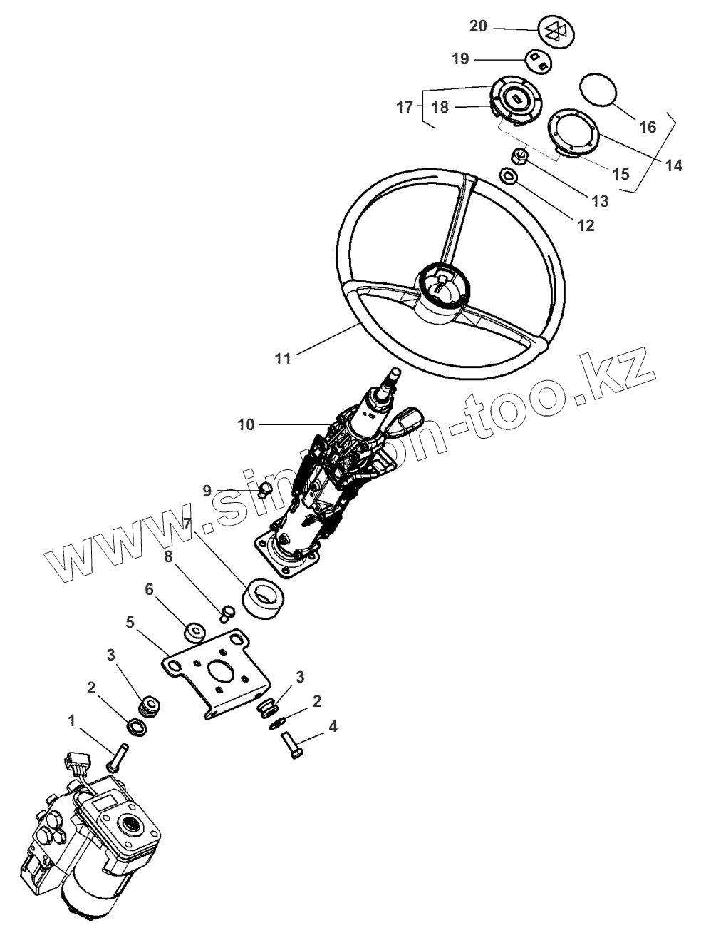 Каталог запасных частей к технике: Massey Ferguson MF-8650 Dyna-VT. Steering Wheel And Telescopic Column