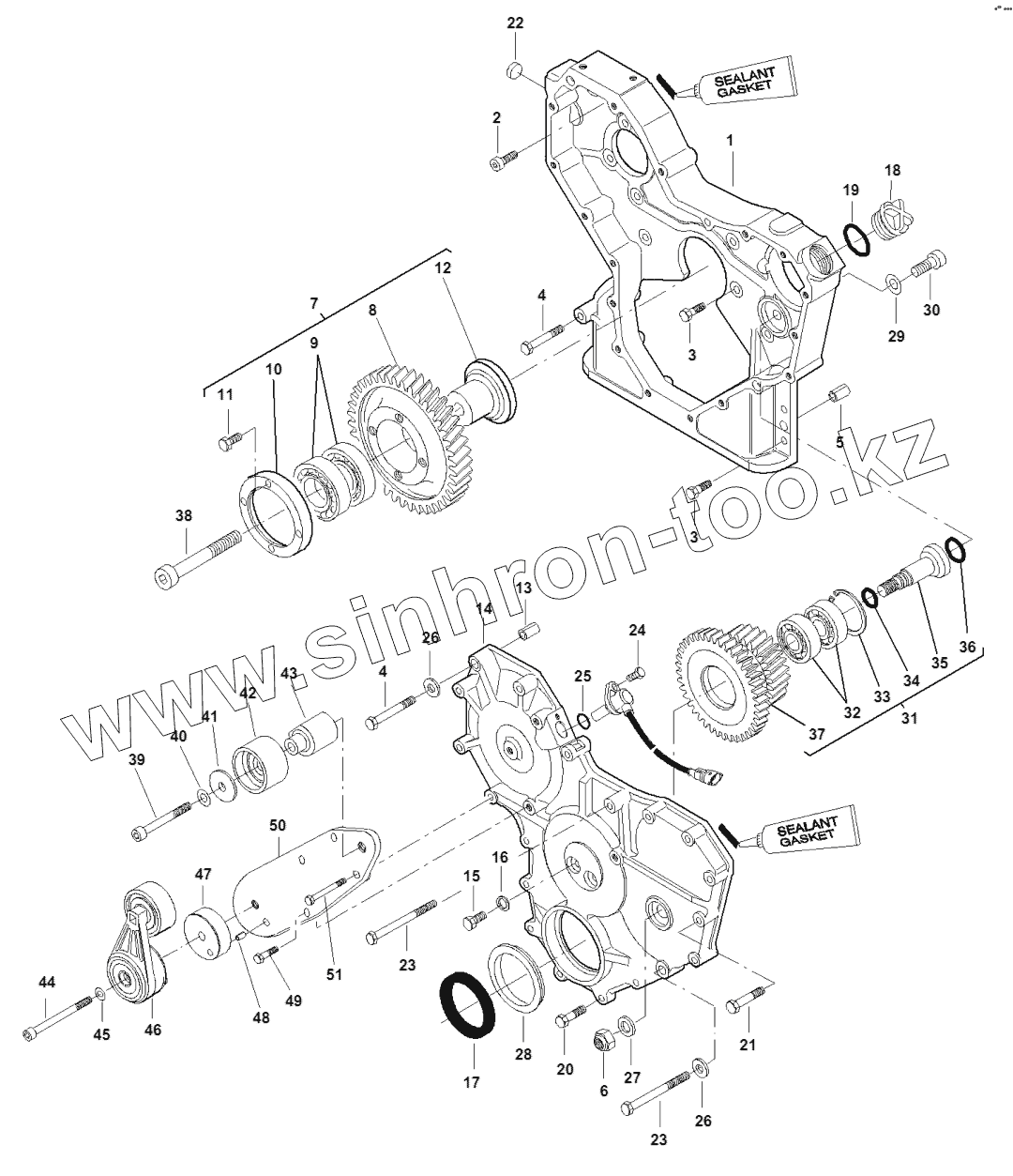Каталог запасных частей к технике: Massey Ferguson MF-8650 Dyna-VT. Timing Gear Housing