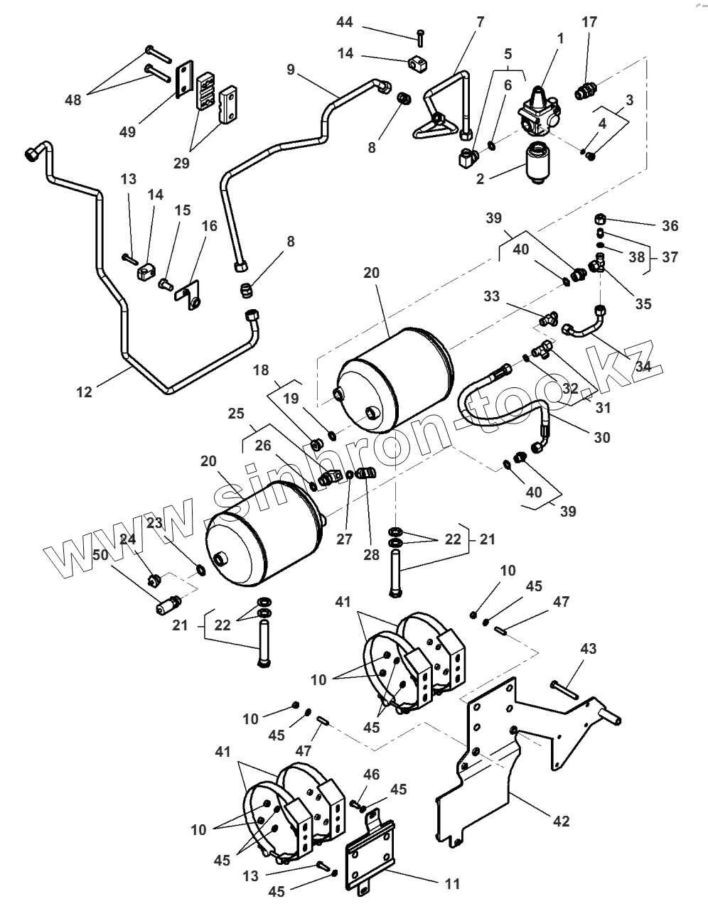 Каталог запасных частей к технике: Massey Ferguson MF-8650 Dyna-VT. Trailor Brake - Pneumatic Feeding