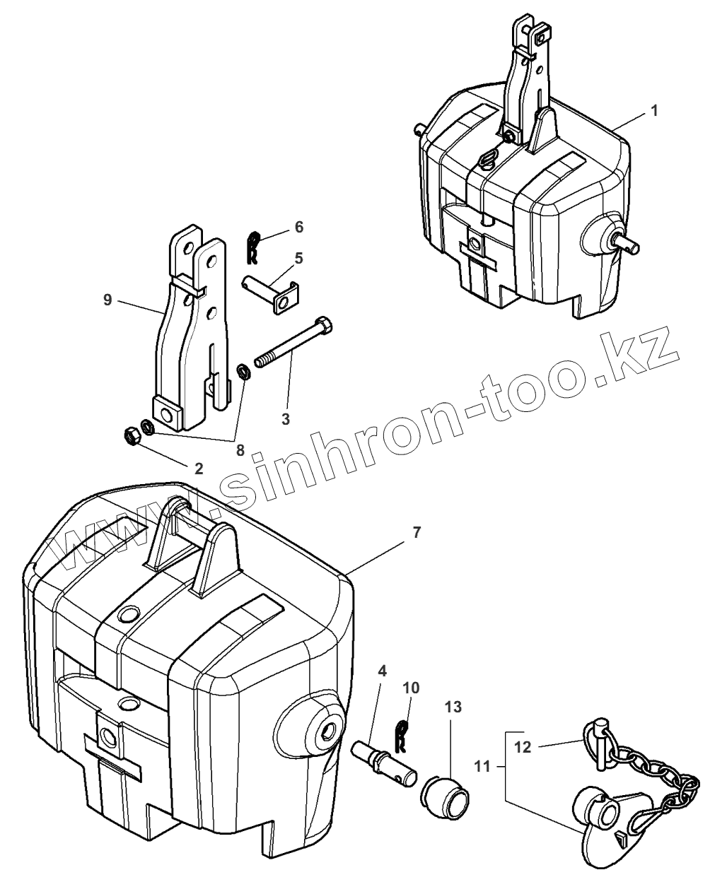 Каталог запасных частей к технике: Massey Ferguson MF-8650 Dyna-VT. Weight Frame And Tow Pin