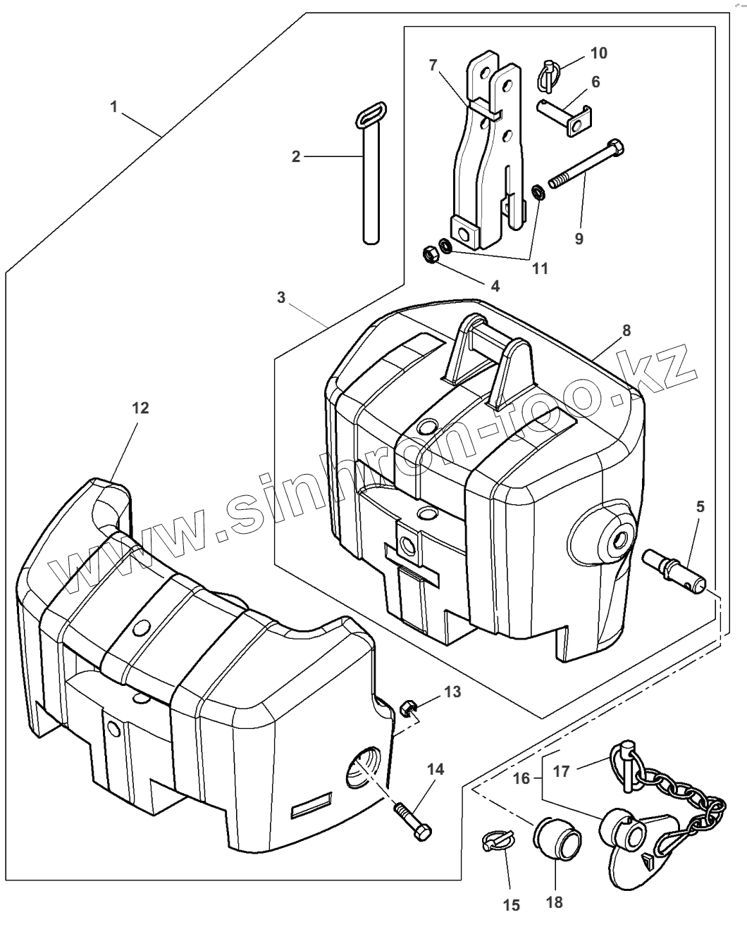 Каталог запасных частей к технике: Massey Ferguson MF-8650 Dyna-VT. Weight Frame And Tow Pin
