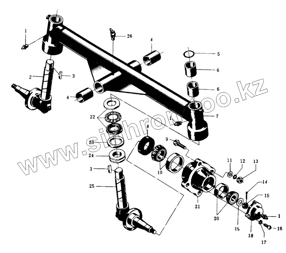 Каталог запасных частей к технике: Минитракторы Уралец. Передний мост с нерегулируемой колеей в сборе