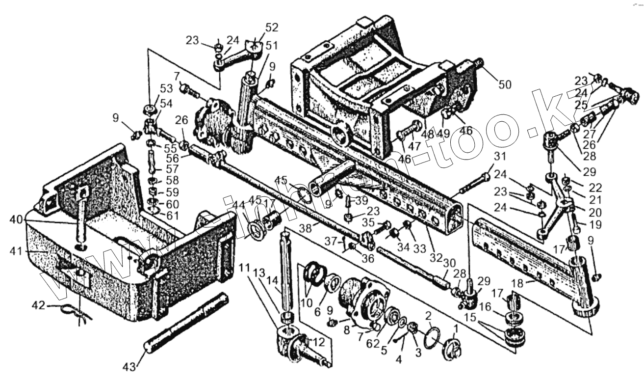 Каталог запасных частей к технике: Минитракторы Уралец. Передний мост с регулируемой колеей в сборе