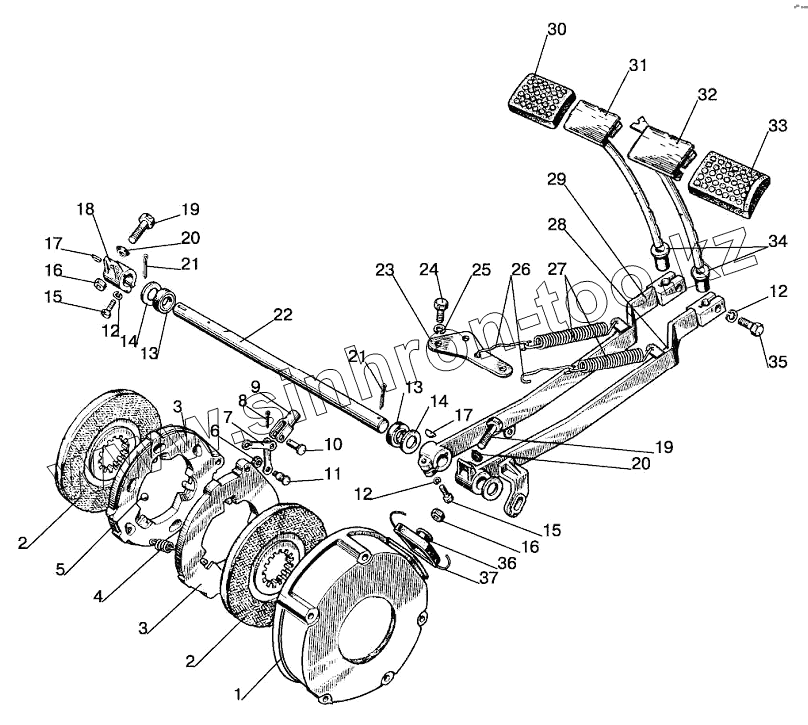 Каталог запасных частей к технике: МТЗ 1025/1025.2/1025.3. Тормоза. Управление тормозами