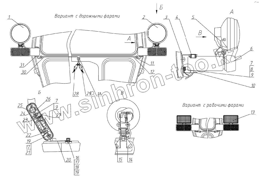 Каталог запасных частей к технике: МТЗ 1025/1025.2/1025.3. Установка фонарей передних