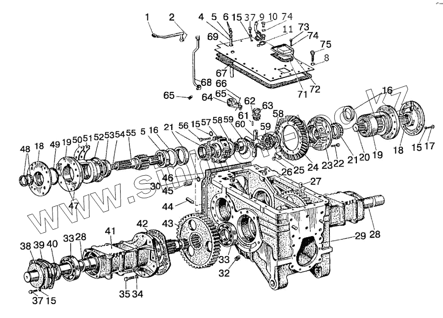 Каталог запасных частей к технике: МТЗ 1025.5. Корпус заднего моста. Дифференциал. Конечная передача
