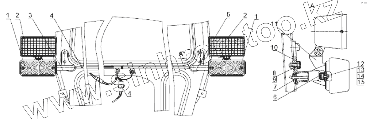 Каталог запасных частей к технике: МТЗ 1025.5. Установка фонарей передних с рабочими фарами