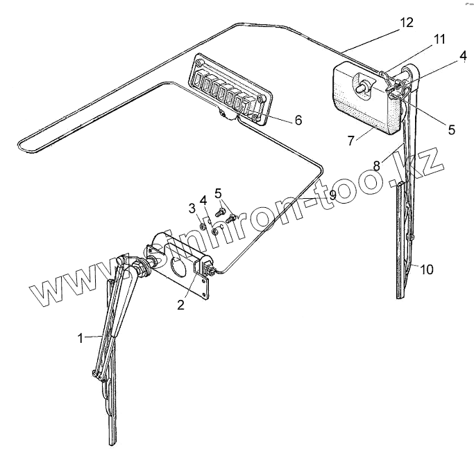 Каталог запасных частей к технике: МТЗ 1025.5. Установка стеклоочистителя