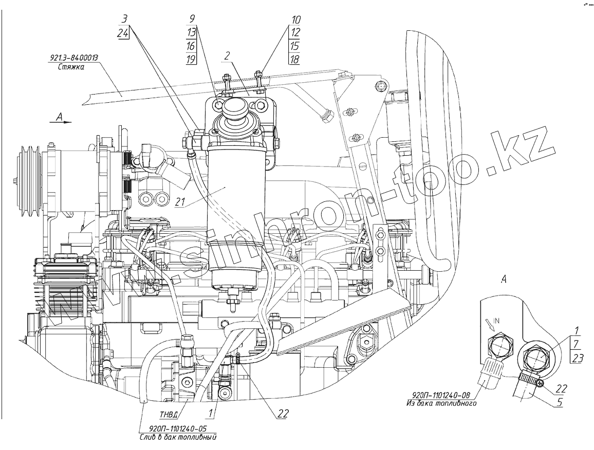 Каталог запасных частей к технике: МТЗ 1025.5. Установка топливного фильтра