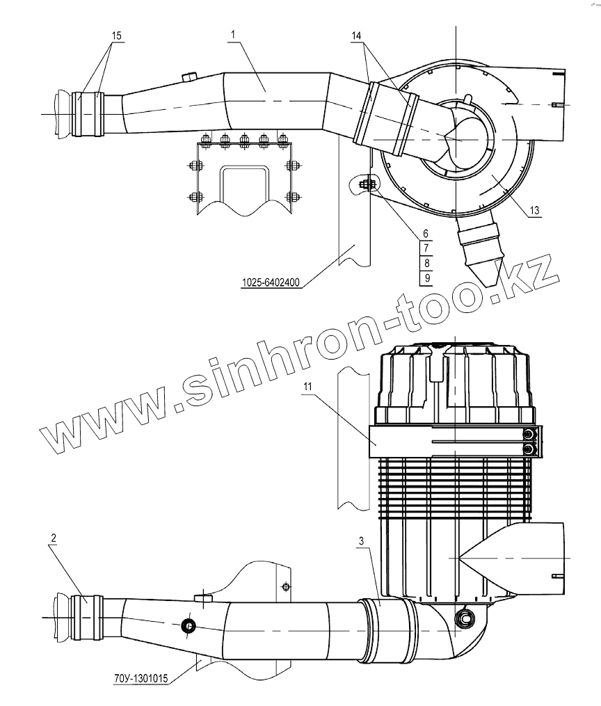 Каталог запасных частей к технике: МТЗ 1025.5. Установка воздухоочистителя