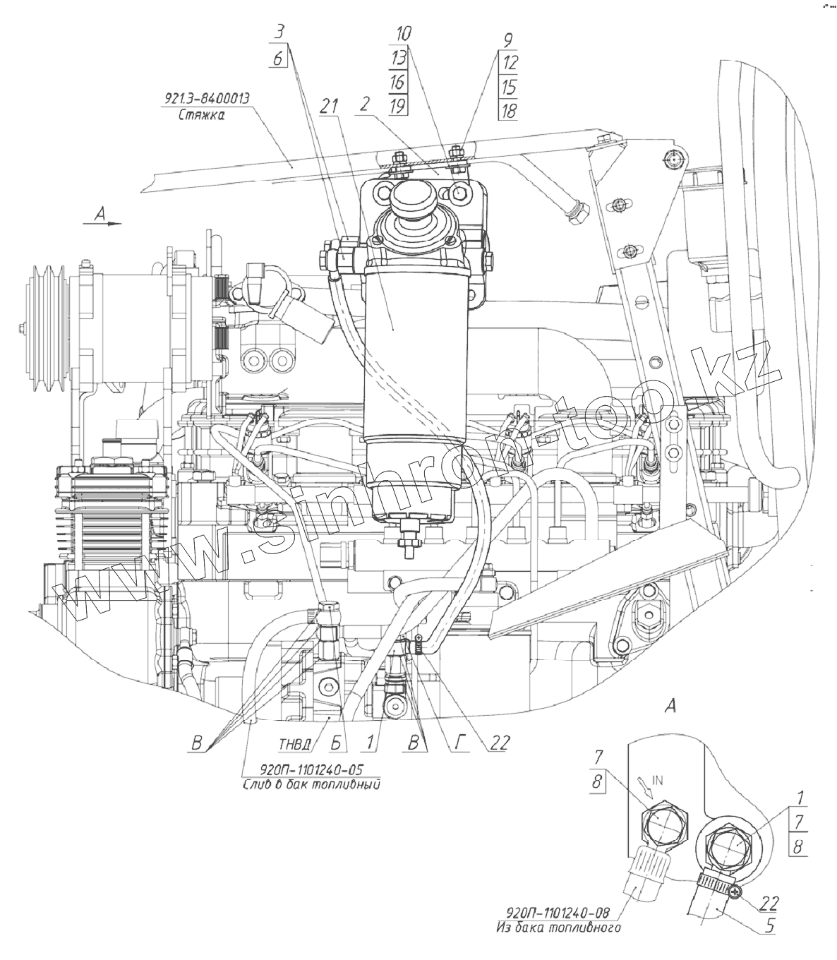 Каталог запасных частей к технике: МТЗ 1220. Установка топливного фильтра